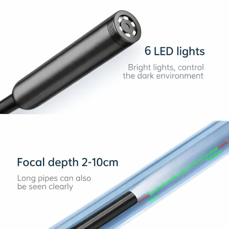 The high-definition camera equipped with 2 million HD pixels delivers sharp, detailed images so you can identify issues with precision. Surrounding the lens are six built-in LED lights that brighten even the darkest corners, ensuring a clear view without guesswork, disassembly, or surprises.