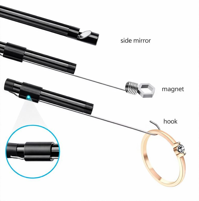 For added versatility, the Home Endoscope® includes three practical accessories: a side mirror for angled viewing, a magnet for retrieving small metal objects, and a hook for lifting or pulling out tiny items. These attachments turn the camera into a multi-purpose tool ready for everyday household needs and DIY projects.